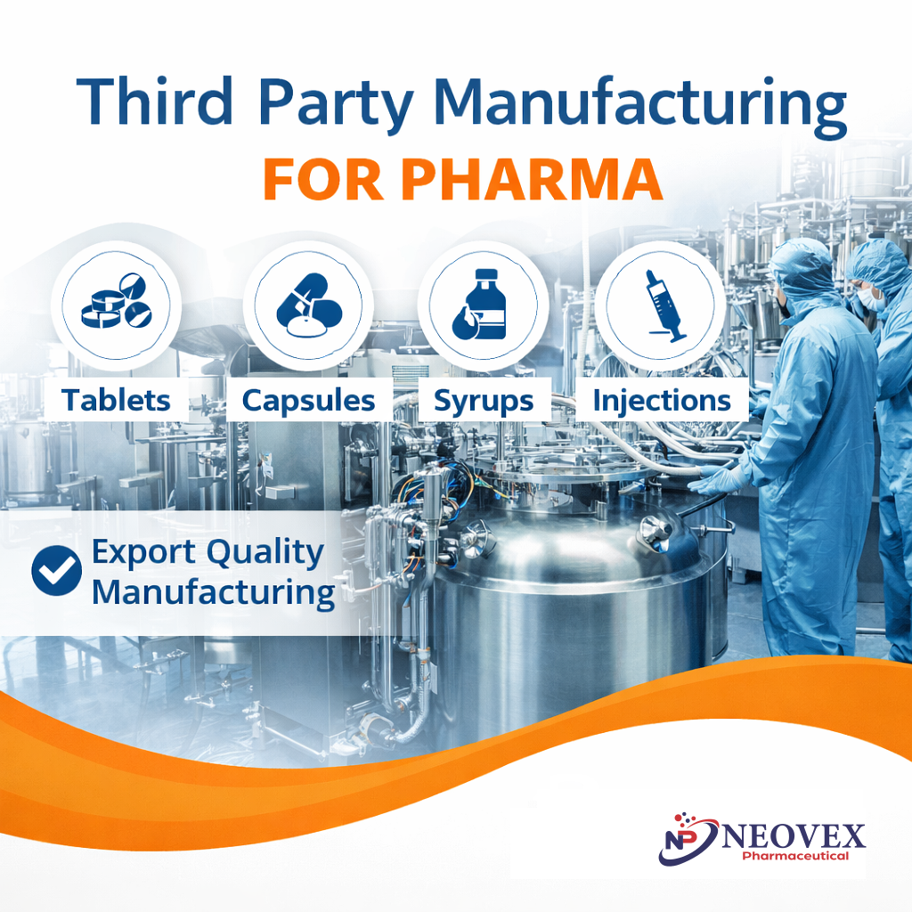 Neovex Pharmaceutical Pvt. Ltd. offers reliable and high-quality Third Party Manufacturing for Export services across multiple international markets. With advanced infrastructure and strict quality control systems, we deliver pharmaceutical products that meet global regulatory standards.